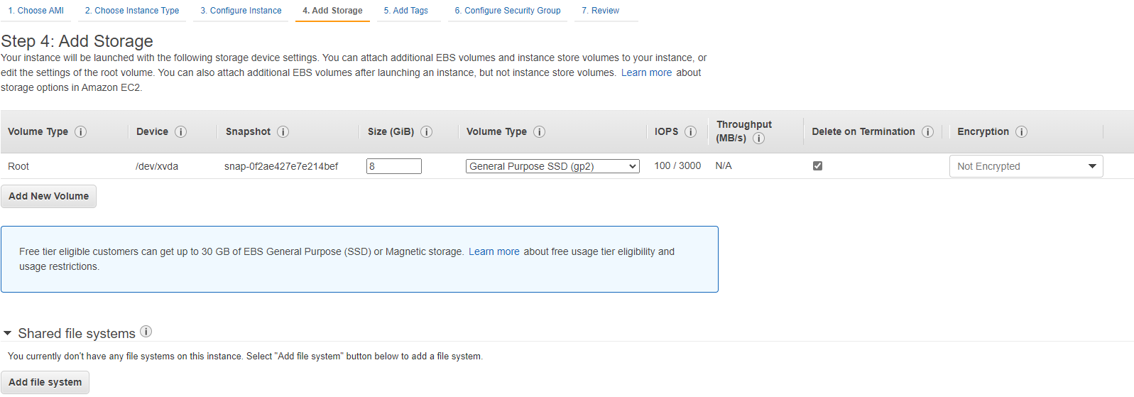 - 인스턴스 설정을 입력한 후 Add Storeage를 클릭합니다.