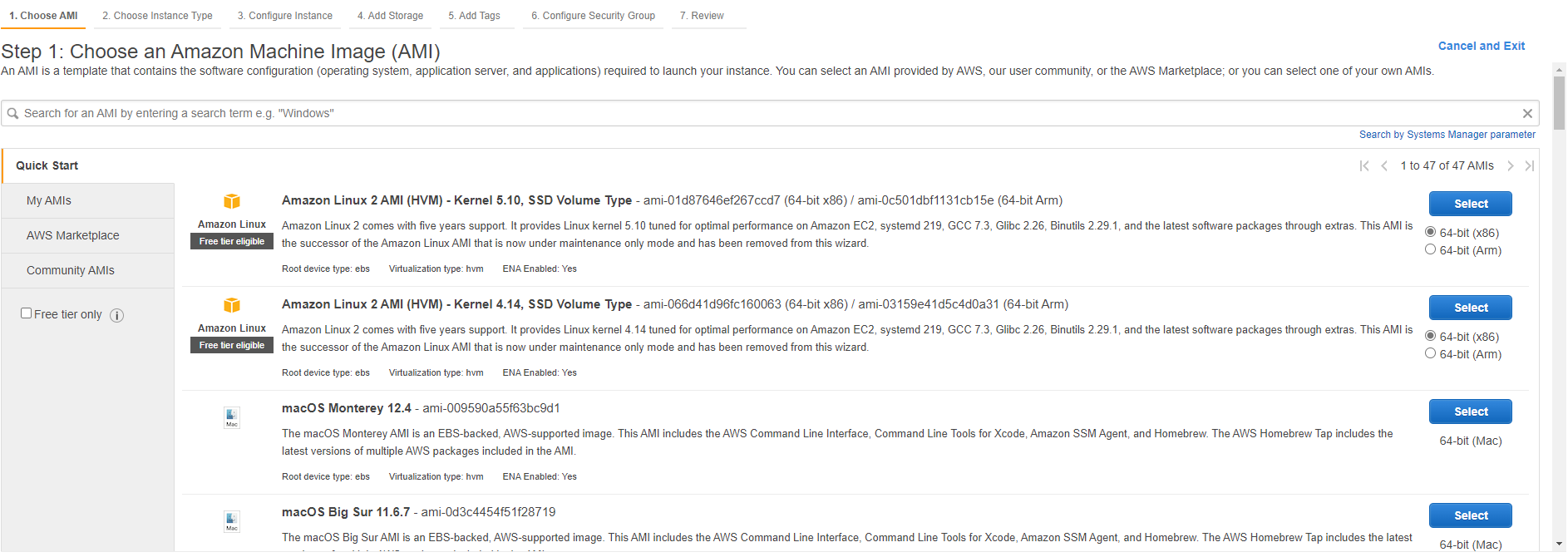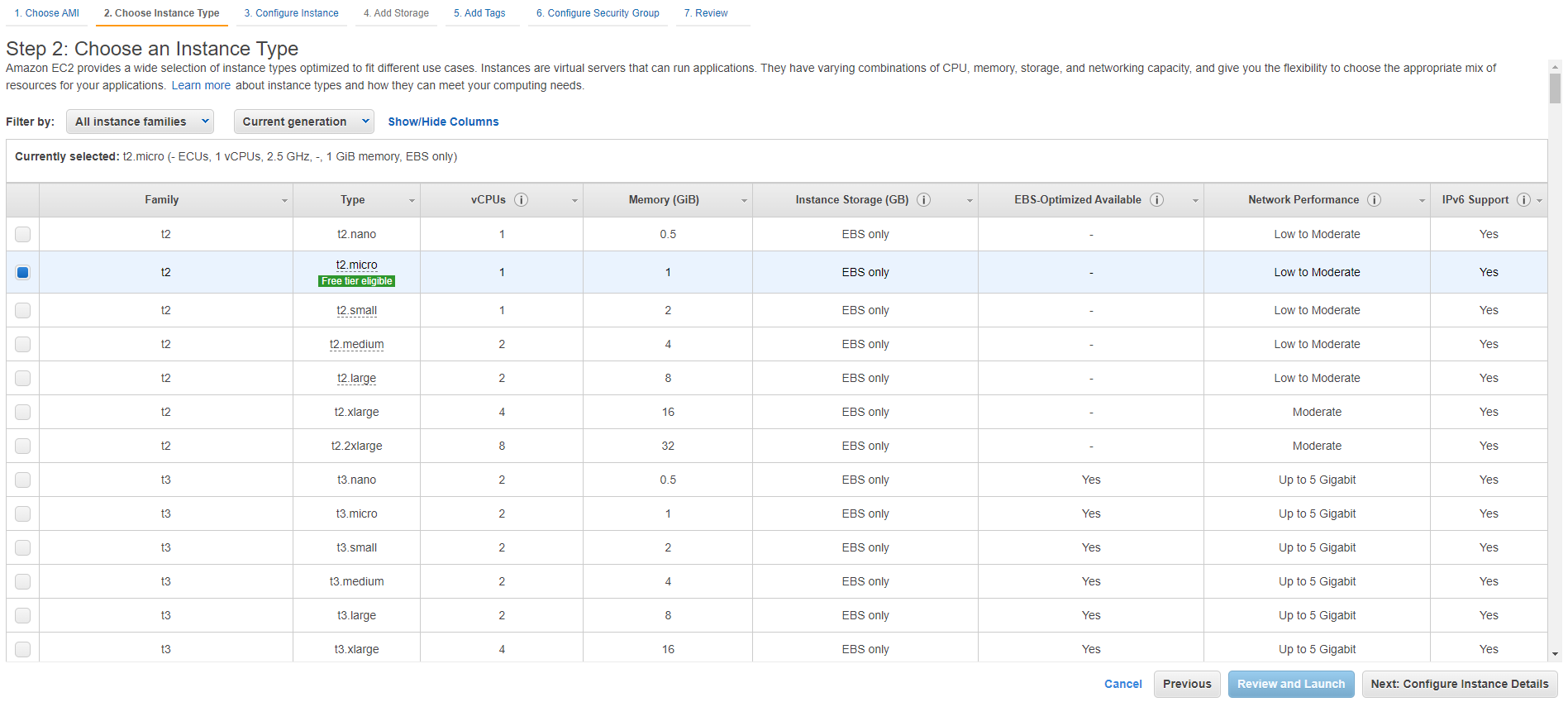 - 인스턴스 타입(서버 사양)을 선택합니다.