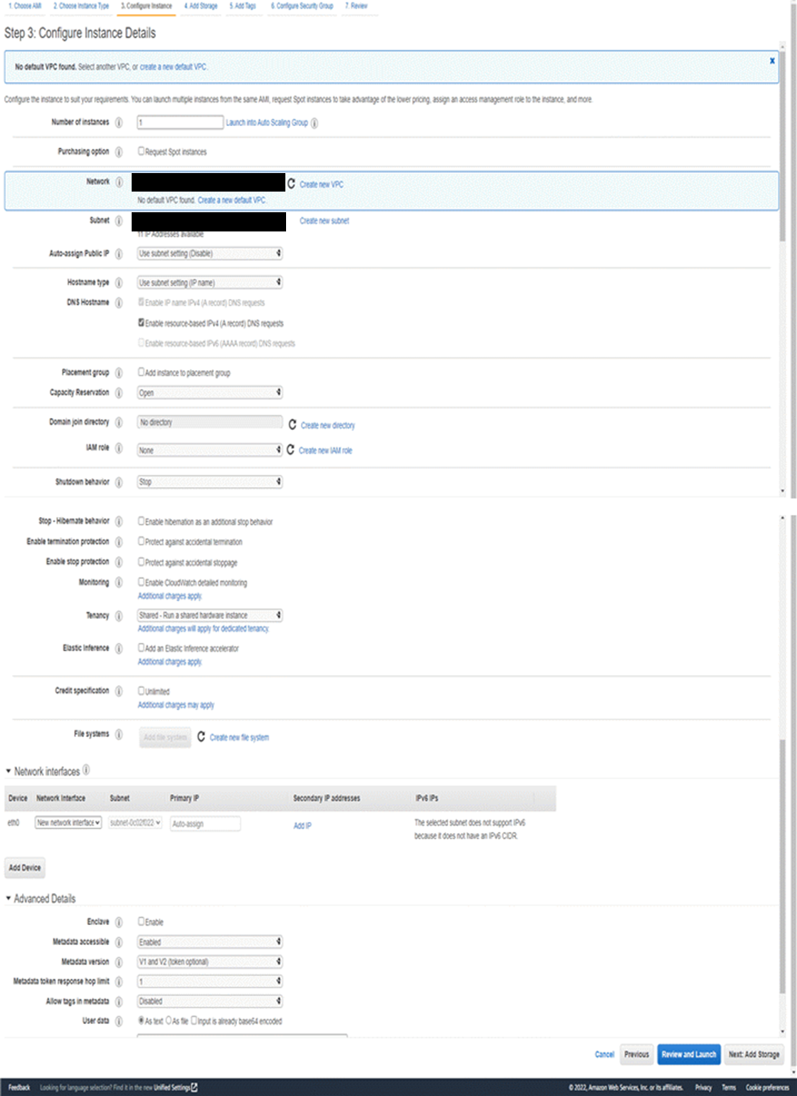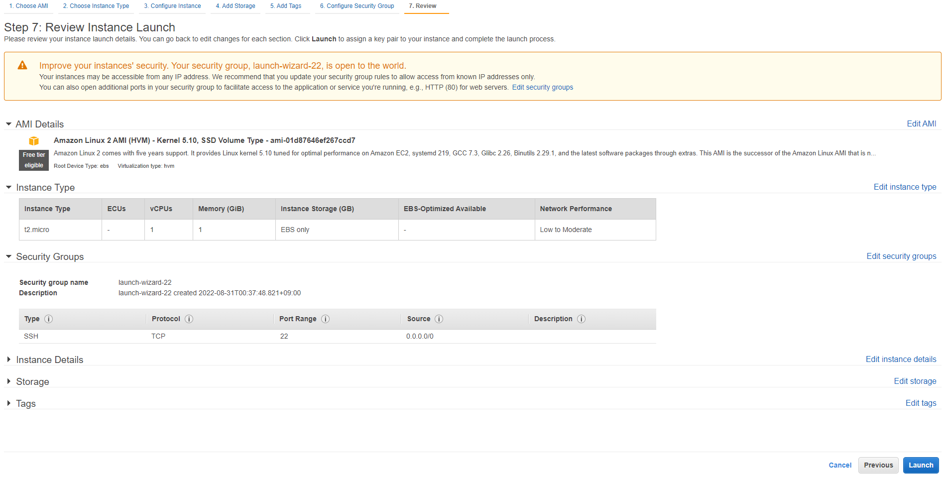 - 변경할 내용이 없다면 Review and Launch를 클릭하세요