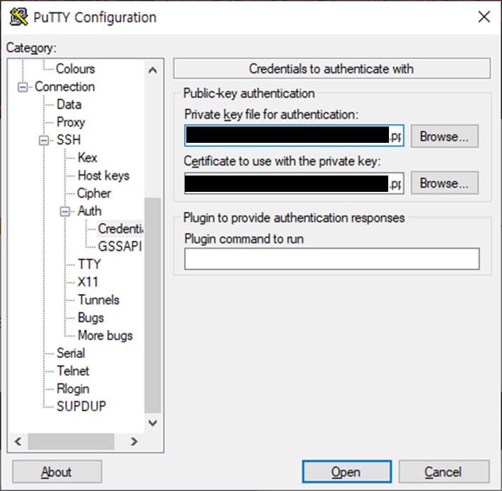 - 기존 버전에서는 Auth에서 하나만 추가하면 되었으나, 업데이트를 한 버전에서는 Private Key와 Certificate에 모두 키를 불러와야 합니다.